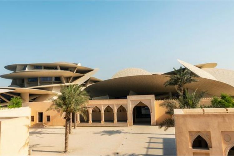 【伊斯兰艺术博物馆】(游览约 1.5 小时)位于卡塔尔首都多哈海岸线之外的人工岛上,占地 4.5 万平方米,是迄今为止最全面的以伊斯兰艺术为主题的博物馆。是 20 世纪最成功的华裔建筑师“贝聿铭”收山之作,博物馆外墙用白色石灰石堆叠而成,折射在蔚蓝的海面上,形成一种慑人的宏伟力量。博物馆中庭偌大的银色穹顶之下,150 英尺高的玻璃幕墙装饰四壁,人们可以透过它望见碧海金沙。